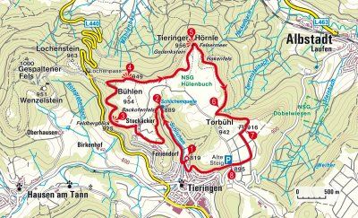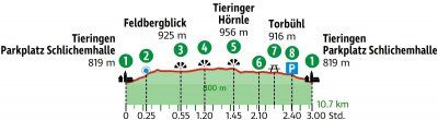 Ausgangspunkt: Tieringen Schlichemhalle/ Barfußpfad, 819 m, Parkplatz, Busanschluss im Ort