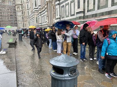 Die Markthalle mercato centrale steht zuerst auf dem Programm, dann gehts zum Piazza del duomo. Der Dom ist schon sehr imposant! Die Warteschlange für den Eintritt ist ewig lang, aber wir stellen uns im strömenden Regen an und nach einer guten Stunde können wir reingehen. Wir haben schon schönere Kirchen gesehen....