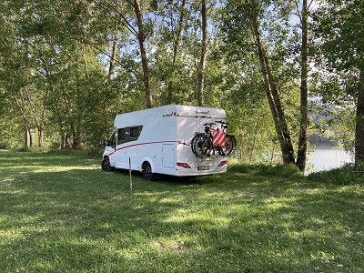 Schöner Stellplatz mit großen Bäumen, nahe der Stadt. Wir haben 25€ bezahlt.