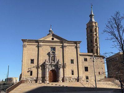 Heute scheint die Sonne, allerdings ist der noch immer starke Wind eisig. Aber wir machen uns auf den Weg. Von einem englischen Paar, dass abgereist ist, haben wir eine aufladbare Karte für die Straßenbahn bekommen, auf der sogar noch ein wenig Restguthaben war. Und tatsächlich kostet mit dieser Karte eine einfache Fahrt sogar nur 45 ct pro Person. Es geht doch! Wir fahren mit der Tram zum Plaza del Pilar, dem zentralen Platz, auf dem sich neben der Touristeninformation, der Kirche mit dem schiefen Turm (gibt es also nicht nur in Pisa) einer Kathedrale, dem Rathaus und noch einem Museum vor allem die Basilica del Pilar, einer der Hauptsehenswürdigkeiten, befindet. Neben den Malereien von Goya ist der Alabasteraltar besonders beeindruckend.