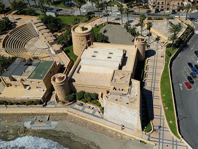 Wir fahren auf den gut ausgebauten Radwegen entlang des Strands in die Altstadt von Almeria. Erste Station ist die Kathedrale. Hier lassen wir auch unsere Räder stehen und besichtigen die anderen Punkte zu Fuß. Die Kathedrale ist absolut sehenswert und kostet im Kombiticket mit dem Kloster, das in unmittelbarer Nähe liegt und auch einen Besuch lohnt, 10 Euro p.P.