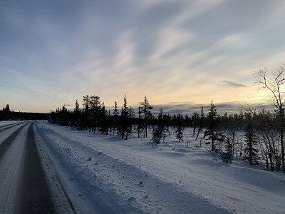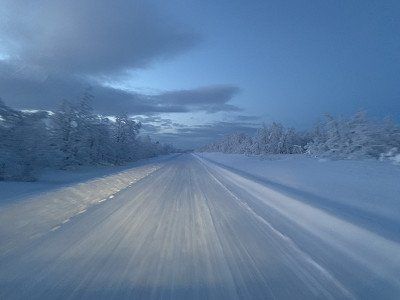Die Straßenverhältnisse waren wechselnd, von schwarz, verschneit, vereist bis zu einer Mischung aus allem. Oft hat man festgefahrenen waschbrettartigen Schnee, was Geräusche im WoMo hervorruft, die man so vorher nicht kannte.