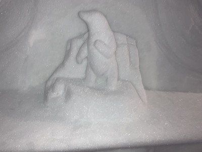 Wir entdecken eine Steckdose, die ziemlich schnell von uns belegt ist, ziehen uns richtig warm an, werden am Check in begrüsst, dabei der grünen Gruppe zugeordnet und bekommen die Zeiten für Schiffsführung und Eisbaden. Leider ist das Eis nicht so tragbar, das wir darauf spazieren dürfen.
