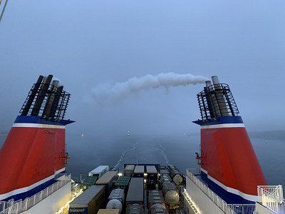 Wir sind gegen 14 Uhr überpünktlich am Tysklandsterminalen und außer ein paar LKW die ersten. Kurz nach 16 Uhr beginnt der Check in und wir sind etwa 1 h später auf dem Dampfer. Man zwängt uns in eine Lücke, so das ich aussteige und einweise. Dem Stena Einweiser traut Henry keinen cm über den Weg. Der ist irgendwie verstört wieso ich übernehme, nimmt es nach meiner etwas bestimmenden Antwort aber hin. Nach ein paar Mal hin und her stehen wir endlich unbeschadet und wir gehen keinen Meter von der Stelle, bis nicht alle Fahrzeuge um uns herum stehen.