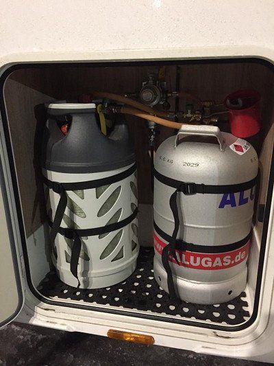 Wir haben in Finnland am ersten Tag eine Kompositflasche gekauft - hatten zum Glück auch den richtigen Adapter besorgt - und diese Flasche bisher einmal in Norwegen getauscht. Noch zeigt die DuoControl grün.
