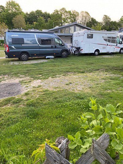 Direkt unterhalb liegt der Campingplatz Alpenblick. Auf den ersten Blick total schlicht und einfach aber Praktischerweise liegt dieser nur einen schönen Spaziergang entfernt von der Promenade in Hagnau und dann waren es uns die 35€ wert um nicht wieder nach einem passenden Parkplatz suchen zu müssen.