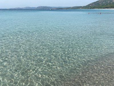Leider hatten wir dieses Mal keinen Wow-Effekt. Die Bucht ist sehr schön umrahmt von Felsen und Macchia und tatsächlich waren auch die berühmten Kühe am Strand aber uns war es (im Vergleich zu den bisherigen Stränden) zu voll und auch schmutzig… Der Strand selber sah einfach nicht so „einladend“ aus: Kuhkot, immer wieder Zigarettenstummel, Schmutz vom Meer und Ameisen…