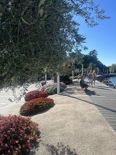 Am letzten Vormittag haben wir nochmal einen Spaziergang an der Promenade gemacht und etwas am See verweilt: das schöne Wasser und die Berge nochmal genießen und den Gleitschirmfliegern und Wassersportlern zuschauen…