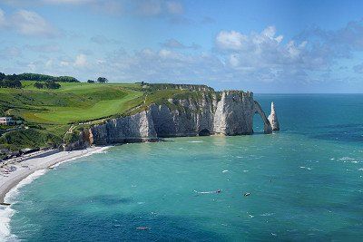 - Stand-Up Paddle in Étretat: Die imposanten Kreideklippen von Étretat an der Alabasterküste waren eines der Lieblingsmotive der Impressionisten und gelangten spätestens durch die Netflix-Serie Lupin zu internationaler Berühmtheit. Wer sich neben den surreal anmutenden Felsformationen einmal ganz klein fühlen möchte, kann auf einem Stand-Up-Paddle unter dem sogenannten Nadelspitzen-Felsen durchpaddeln. Die lokale Segelschule Voile et Galets organisiert dieses normannische Erlebnis. Wer lieber an Land unterwegs ist, kann auf dem Küstenwanderweg GR 21 die Alabasterküste entlang wandern.