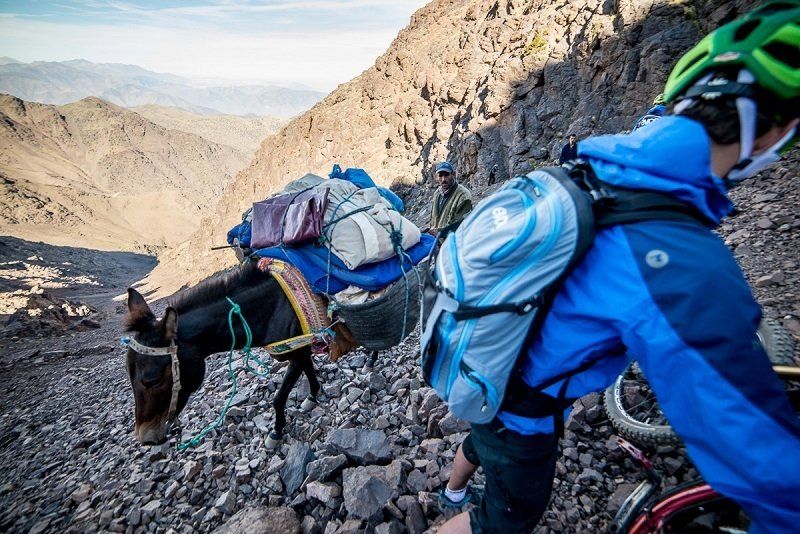Anforderung fürs Mountainbiken auf dem Toubkal: Bergerfahrung und sicheres Biken auf hochalpinen Wegen ist absolut notwendig. Alpine Wanderpfade, Spitzkehrentechniken sinnvoll, teilweise Absturzgefahr, Trittsicherheit nötig. Keine organisierte Rettung möglich! Aufstiege mit Rad schieben/tragen bis 1.000 Höhenmeter. Höhenakklimatisierung vor Ort oder in den Alpen ist empfehlenswert. Der höchste Übernachtungspunkt ist die Toubkalhütte (Refuge Toubkal) mit 3200m.