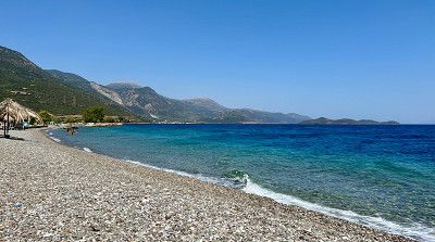 Am Strand gibt es etwas zu viele Sonnenschirme und es ist tagsüber viel los - für uns zu viel. Aber das Meer und die Bucht sind sehr schön und Massentourismus ist das noch nicht. In der Taverne am Strand kann man gut essen.