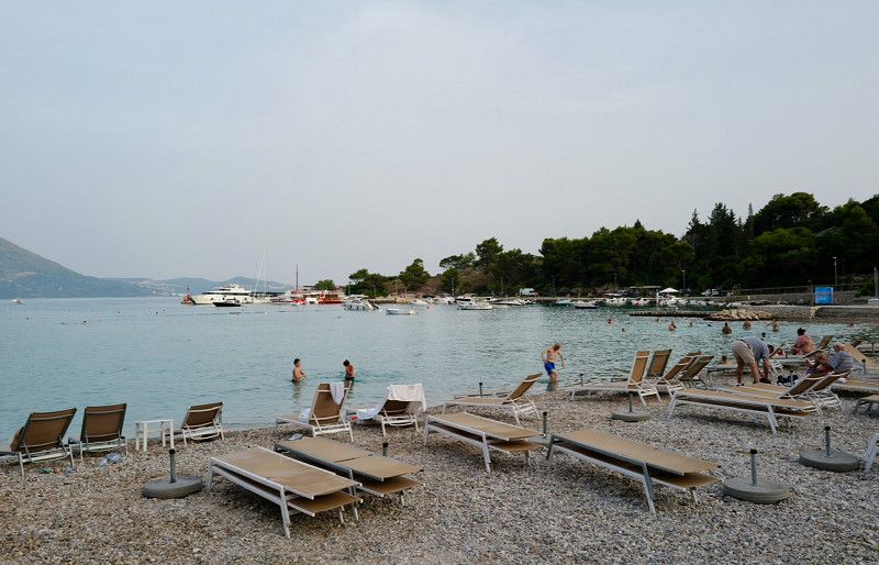 Etwas südlich von Dubrovnik kommen wir nach 11 stündiger Fahrt mit etwas Stau in Matkovica auf einem kleinen, sehr einfachen Campingplatz an. Die Stadt hat nicht sehr viel zu bieten: einige Lokale, einen Strand mit einem zu großen Sheraton Hotel und diesem einfachen, individuellen Campingplatz. Die Besitzerin ist sehr freundlich und zuvorkommend. Es ist alles da, was man für eine Übernachtung braucht. Es ist alles sehr rudimentär und große Ansprüche darf man nicht haben. Nur etwas mehr „Kümmern“ und es könnte so richtig schön sein.
