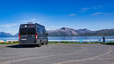 In Reine stehe ich auf dem Stellplatz hinter den Tesla Superchargern. Dort gibt es auch eine Möglichkeit für den Service. Kostenpunkt pro Nacht: 250 NOK. Es gibt keinen Strom.