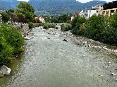 Von hier aus ist man in 15 Minuten zu Fuß in der Therme oder im Stadtzentrum von Meran. Wenn Ihr einen Stadtbummel macht, versäumt nicht im Pur-Südtirol (Freiheitsstr. 35) vorbei zu schauen, ein Laden mit regionalen Produkten und kleiner Gastronomie, super lecker!