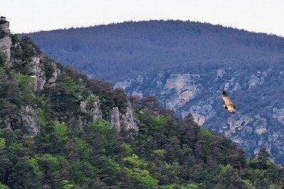 Um 1940 ausgerottet, wurden nach mehreren Jahren sorgfältiger Vorbereitung die ersten fünf Paare im Dezember 1981 über der Jonte-Schlucht ausgesetzt. Jetzt brüten wieder mehr als 50 Paare in den Cevennen. Atemberaubend, wenn 4-5 dieser mächtigen Vögel über einem kreisen.