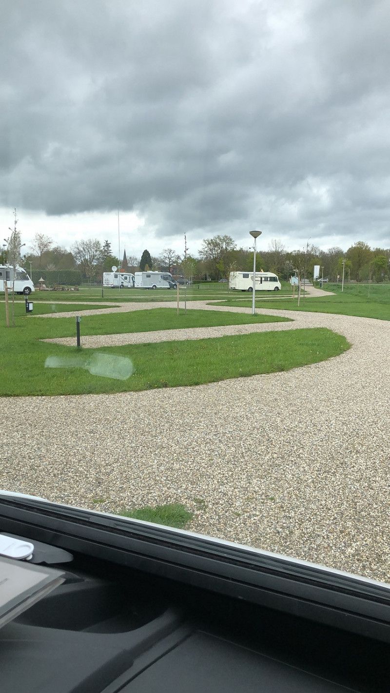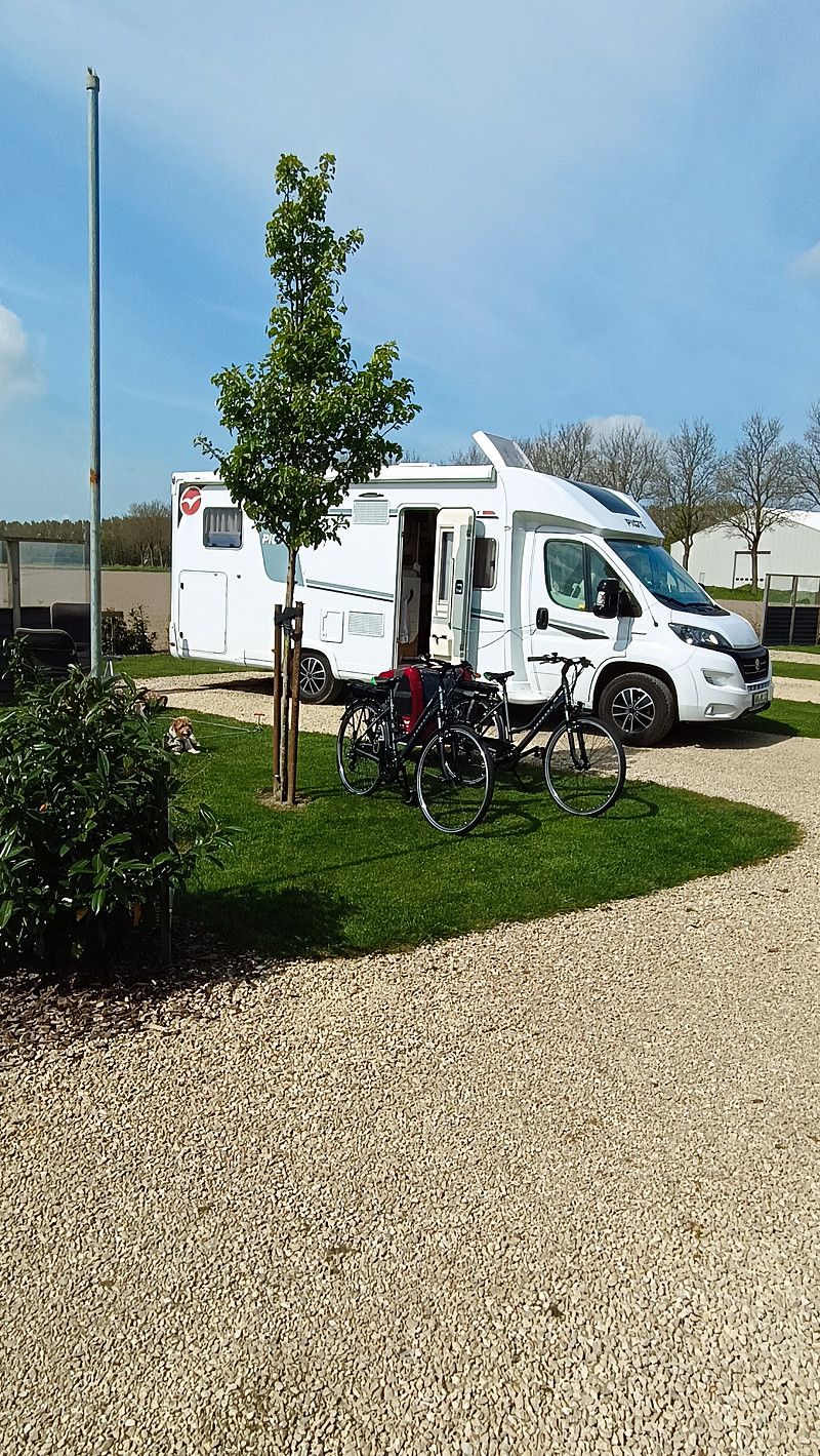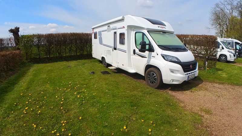 Stellplätze sind groß bemessen und auch für große Fahrzeuge geeignet. Jeder Platz verfügt jeweils über einen Rasen/Grünstreifen.