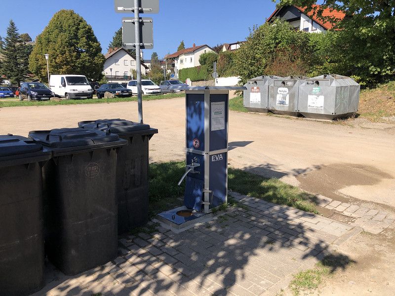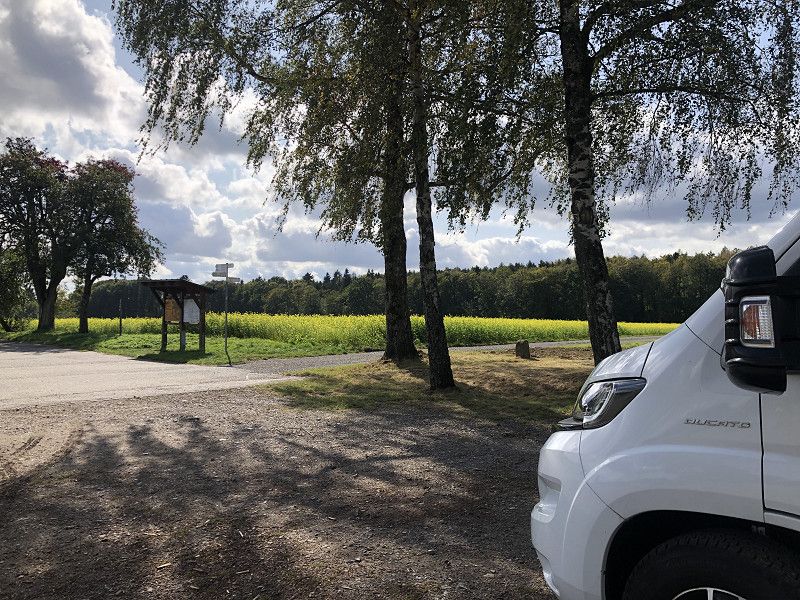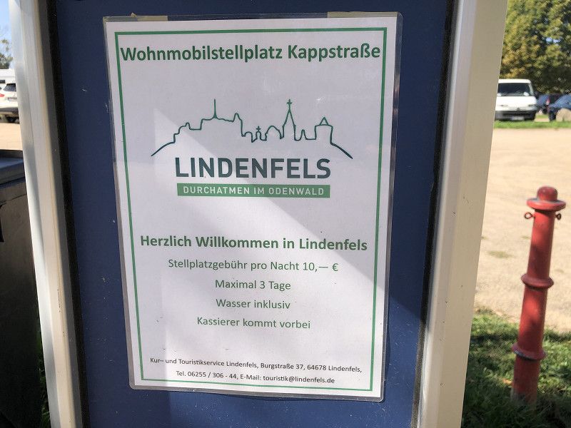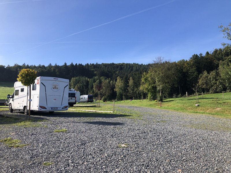 Parkplatz für Wohnmobile am Sportplatz. Keinerlei Service außer einem Mülleimer, dafür schöne Wege rund um den Katzenbuckel, Odenwald‘s höchster Punkt.
