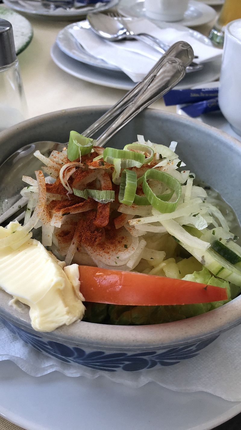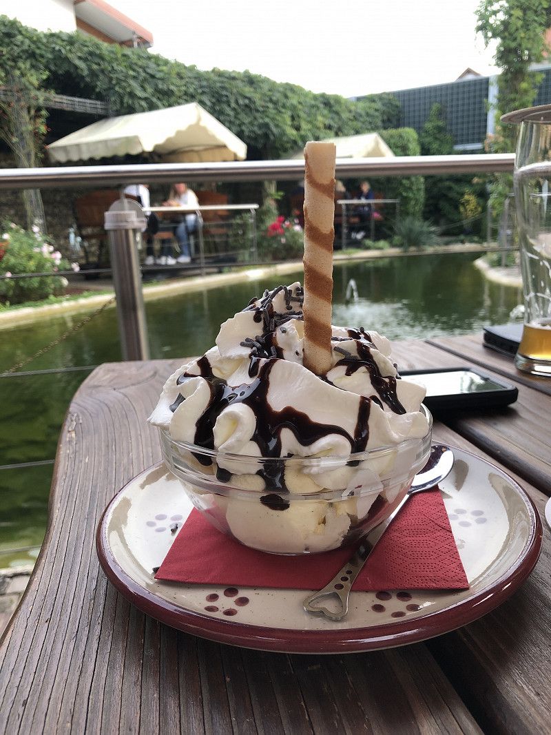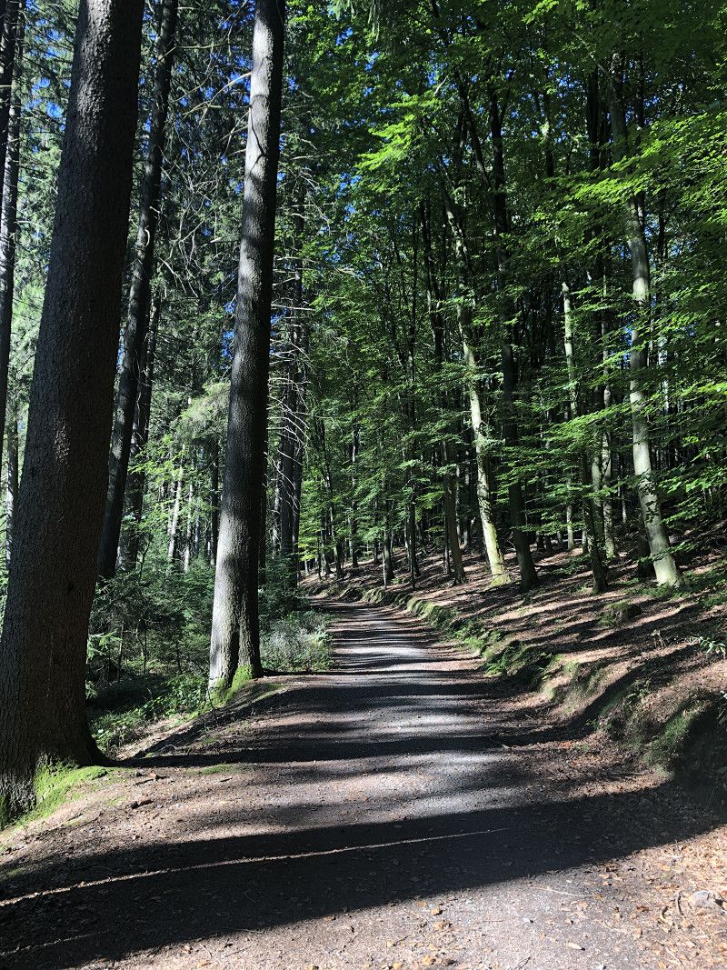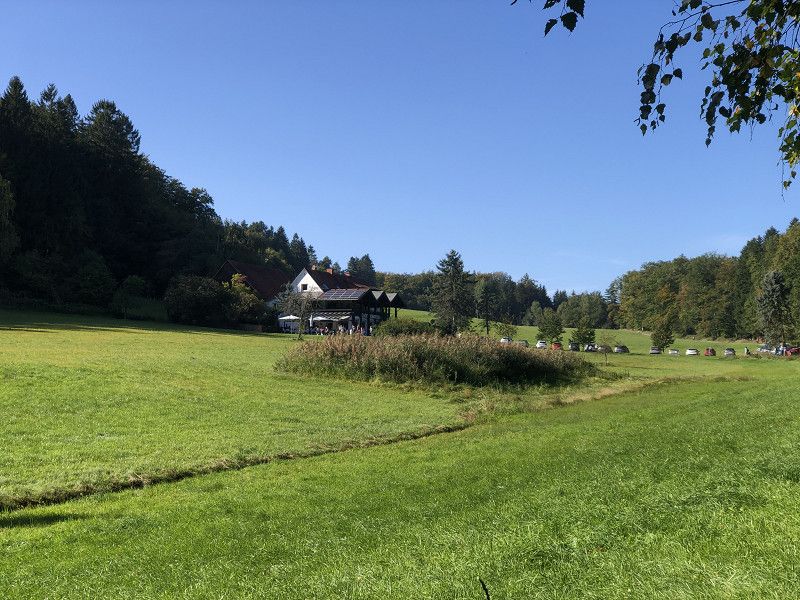 Vom Stellplatz an der Nibelungenhalle läuft man ca 2,8km durch den Wald bis zum Café Bauer. Am Wochenende ist dies sehr gut besucht und man braucht ein bisschen Glück (oder Wartezeit) für einen freien Platz.