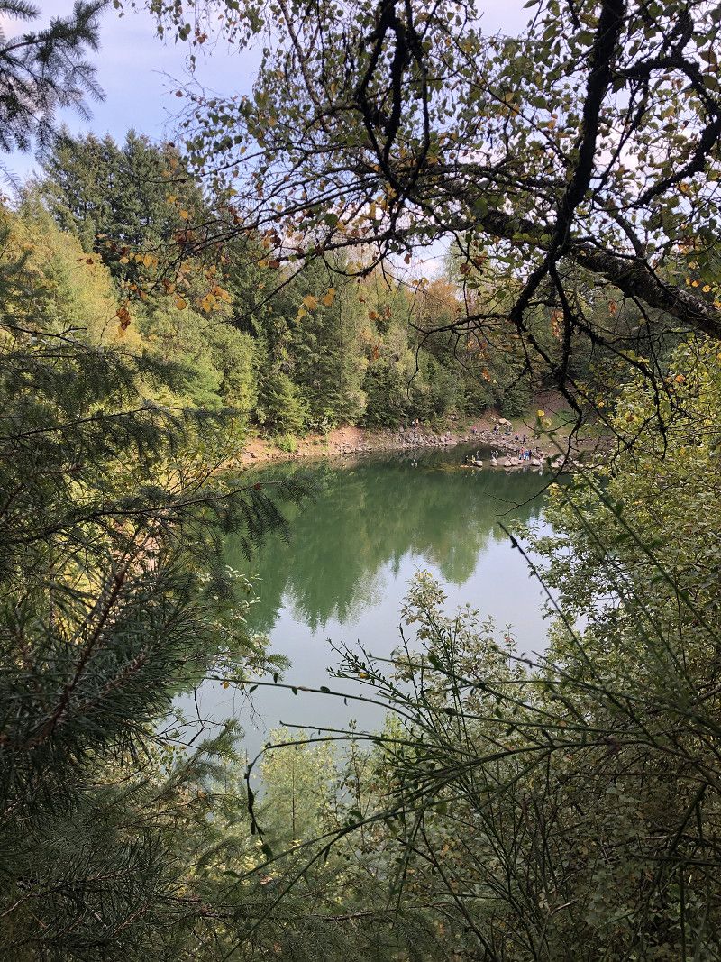 Vor 65 Millionen Jahren gab es hier einen Vulkanausbruch und man kann schön um den Katzenbuckel und Vulkansee spazieren. Das Restaurant Villa Katzenbuckel hat im Herbst nur am Wochenende geöffnet.