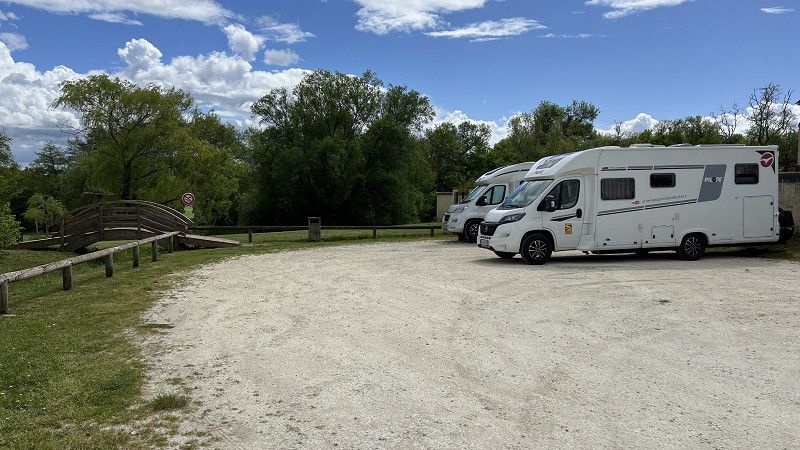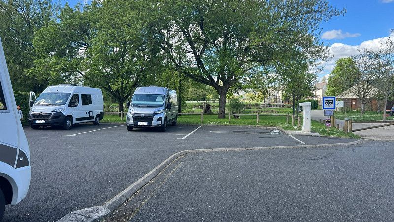 Kommunaler Stellplatz inkl. VE an einem Park mit Weiher für 4 Fahrzeuge. Bei unserer Ankunft um 12 Uhr waren bereits alle Plätze belegt. Wir sind daher weitergefahren.