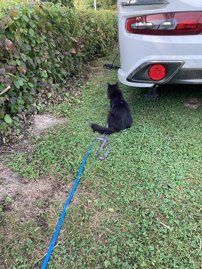 Unsere beiden Samtpfoten 🐈🐈‍⬛ haben die Überfahrt problemlos überstanden und durften für die Weiterfahrt vom Wohnwagen wieder ins Auto umsteigen.