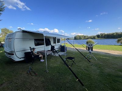 Obwohl wir 3 Nächte auf dem Campingplatz 🏕️ blieben, war es unmöglich, bei der Nässe und den immer wieder unverhofft auftretenden starken Regenschauern und starken Winden, das Vorzelt aufzubauen oder die Markise auszufahren.