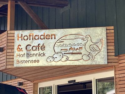 Ein Hofladen mit Café ist gut 3 km vom Bauernhof entfernt und man bekommt dort leckeren (wenn auch nicht ganz billig) selbst gebackenen Kuchen 🍰 zu kaufen. Wir sind zum Hofladen gelaufen und sind dabei an dem örtlich zugänglichen Badestrand mit Liegewiese in Ahlefeld-Bistensee vorbei gekommen. Angrenzend befindet sich dort auch ein Restaurant (Flohrs) was allerdings immer erst ab 14:00 Uhr geöffnet ist.