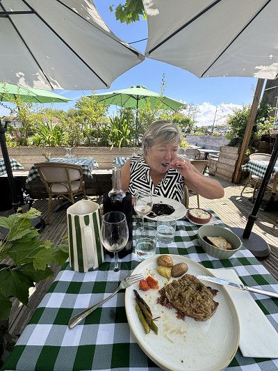 Wat een druk toeristisch gedoe 😱.  Foto’s nemen pintje drinken Tania wat winkeltjes (al de zelfde toerist traps) en dan naar het dorpje en strand van onze camperplaats.