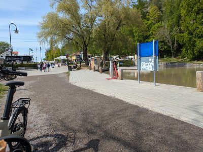 ICA ist einer der größten Lebensmittelgeschäfte in Schweden,  vergleichbar mit Lidl, aber deutlich größerer Fläche. Wir schlendern am Sortiment vorbei, ohne Wagen, "nur schauen, nicht kaufen". Am Ende tragen wir das Brot, den Kuchen zum Mittagskaffee und einen Schwedischen Joghurt, und, und .. in der Hand. Gut, dass wir am Fahrrad eine Tasche haben.