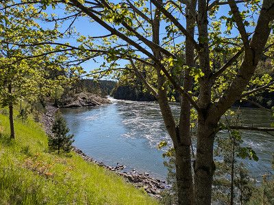 Weil es schon Mittag ist stoppen wir auf einem Tagesparkplatz mit Aussicht auf den Fluss und kochen unsere am Morgen gekauften Köttbullar.