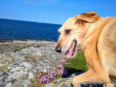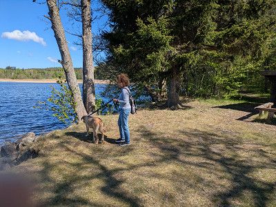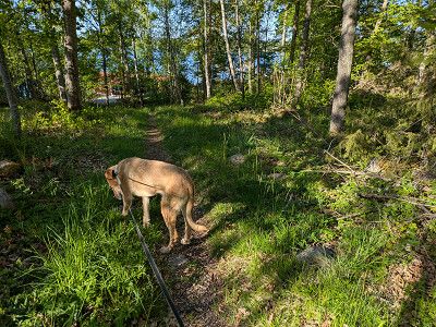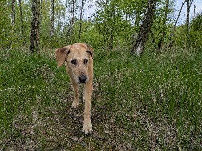 Lotta freut sich, als wir nach 2 Stunden wieder zurückkommen und dann durch den angrenzenden Birkenwald mit ihr spazieren gehen.