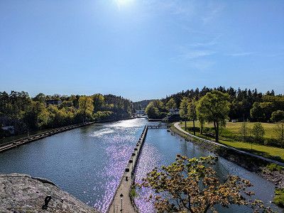 Am Ende der Tagesetappe irren wir dann in Trollhättan auf der Suche nach einem kostengünstigen Parkplatz für die Nacht herum.