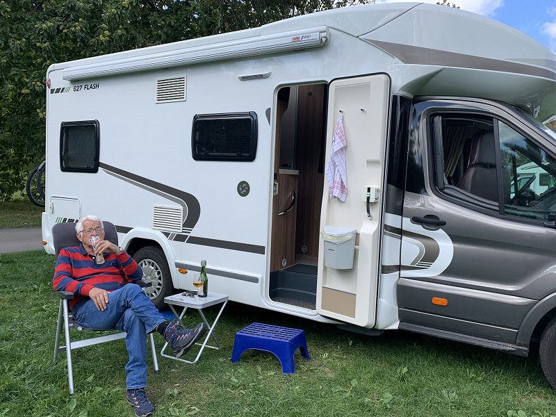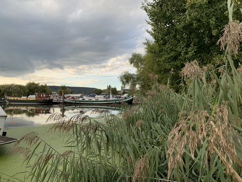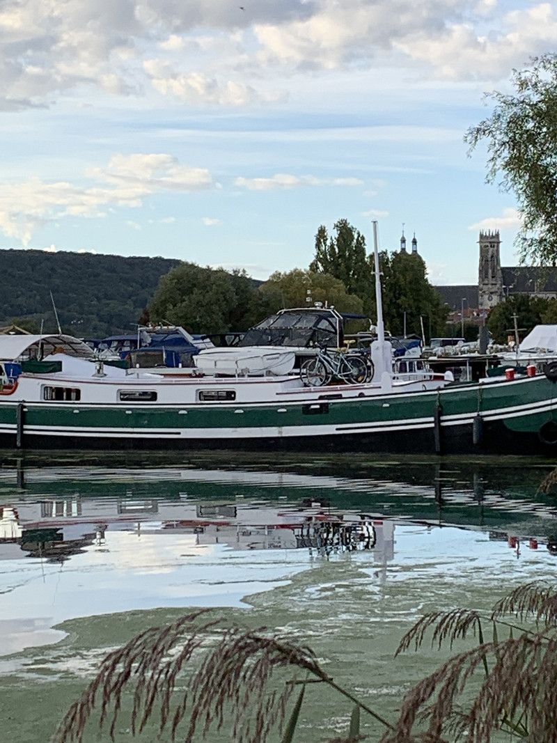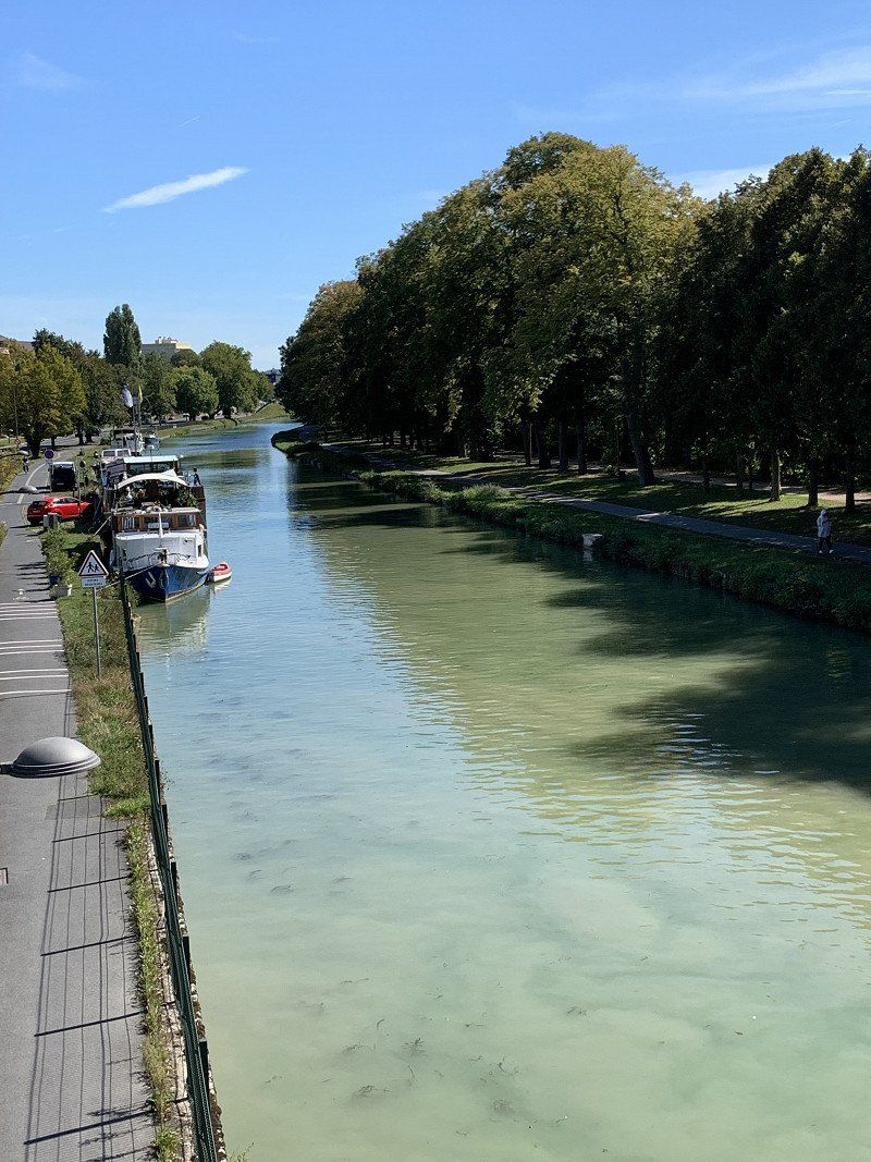 Der Tag ist sonnig und mit 25 Grad noch warm - da sich die Knieprobleme meines Mannes wieder bemerkbar machen, laufen wir langsam am Kanal entlang zum Stellplatz und genießen bei Baguette mit Schinken und Käse den Rest des Tages