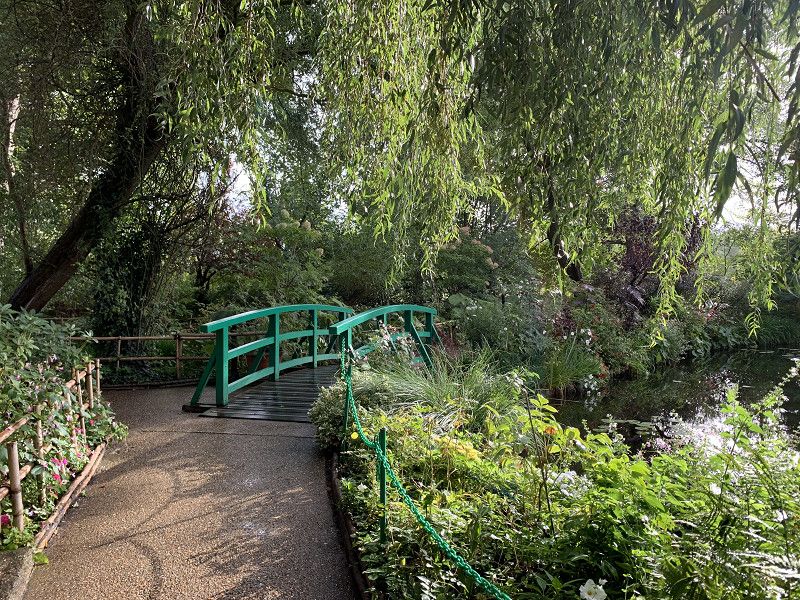 1883 mietete er in Giverny ein Haus an und legte dahinter den Ziergarten an. 1890 kaufte er dieses Haus und das dazugehörige Grundstück. 1893 erweiterte er seinen Garten um ein weiteres Grundstück, was am Fluss Epte liegt. Mit Hilfe einer Abzweigung aus dem Flüsschen Epte entstand so der Wassergarten (französisch: jardin d’eau), besser bekannt als Monets Seerosenteich mit der japanischen Brücke. Von hier gibt es eine Unmenge Bilder u.a. entstand hier auch die Vision des riesigen Bildes der Seerosen, das jetzt in den Tuilerien in Paris zu sehen ist.