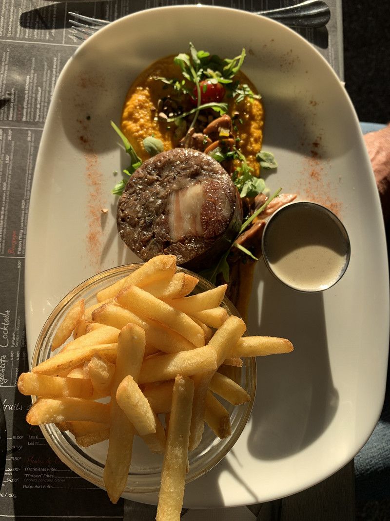 Auf Promobil finde ich einen Stellplatz in Pont à Mousson an der Mosel - er sieht zwar auch belegt aus aber im hinteren Teil 2 finden wir noch ein Plätzchen und entscheiden hier zu bleiben und im Restaurant zu Abend zu essen. Ich wollt nochmals Fisch essen aber natürlich bin ich verwöhnt von den frischen Spezialitäten in der Bretagne.
