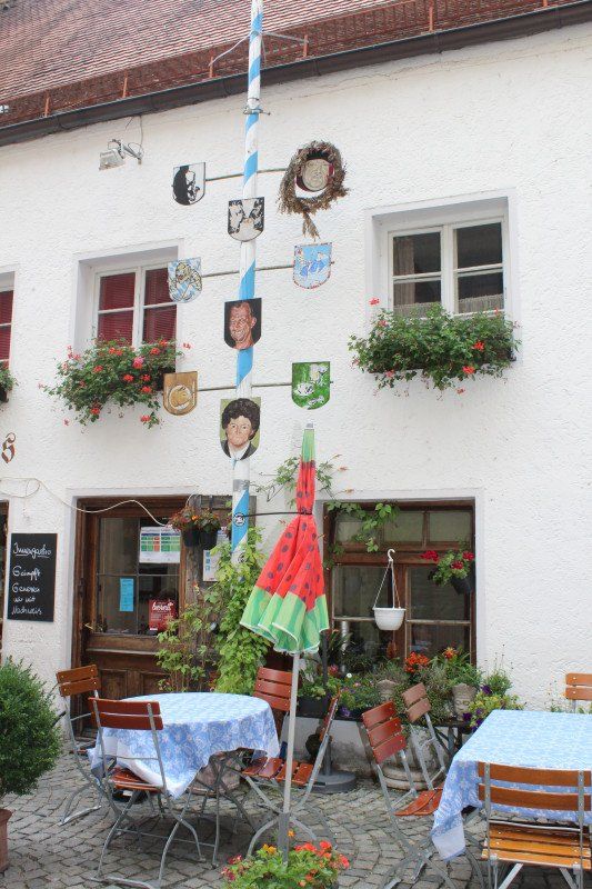 Wir haben im Fürstenbergischen Braustübl einen Cappuccino getrunken, da das Wetter leider nicht für eine Jause im Freien geeignet war