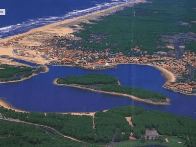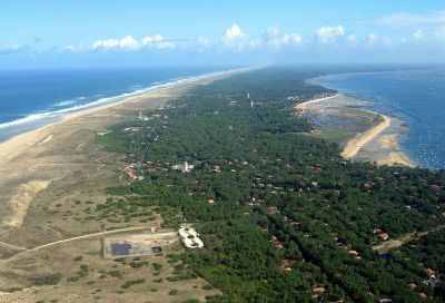 Die Bucht ist zum Atlantischen Ozean hin geöffnet. Sie bildet eine Lagune mit vielfältigen Landschaften : Häfen und Austernzüchterdörfer, feine Sandstrände, Pinienwälder, Inseln und Hal-insel, See, Salzwiesen und die berühmte Wanderdüne, Dune du Pilat.