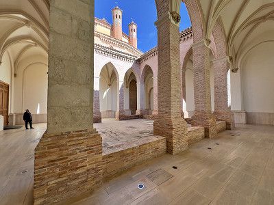 Wir haben uns das Kloster heute angesehen. Wir haben, mit Seniorenrabatt, sieben Euro pro Person bezahlt. Einen kostenlosen Audioguide kann man sich per QR-Code auf's Handy laden. Wir haben uns für die kurze Tour entschieden, die dennoch durch alle zugänglichen Räume führt, denn das Kloster beherbergt noch immer Zisterzienser. Das Kloster ist auch die Grablege für die Könige von Aragon, wobei die Sarkophage schon etwas ungewöhnlich aufgestellt - oder besser angebracht - worden sind. Besonders sehenswert sind, neben den Königsgräbern und der Basilika der Kreuzgang mit den Gartenanlagen und natürlich die Wehrmauer mit dem mächtigen Portal. Das Refektorium und den Kapitelsaal kann man nur durch die Scheiben der Türen anschauen, da das Kloster ja, wie gesagt, noch genutzt wird.