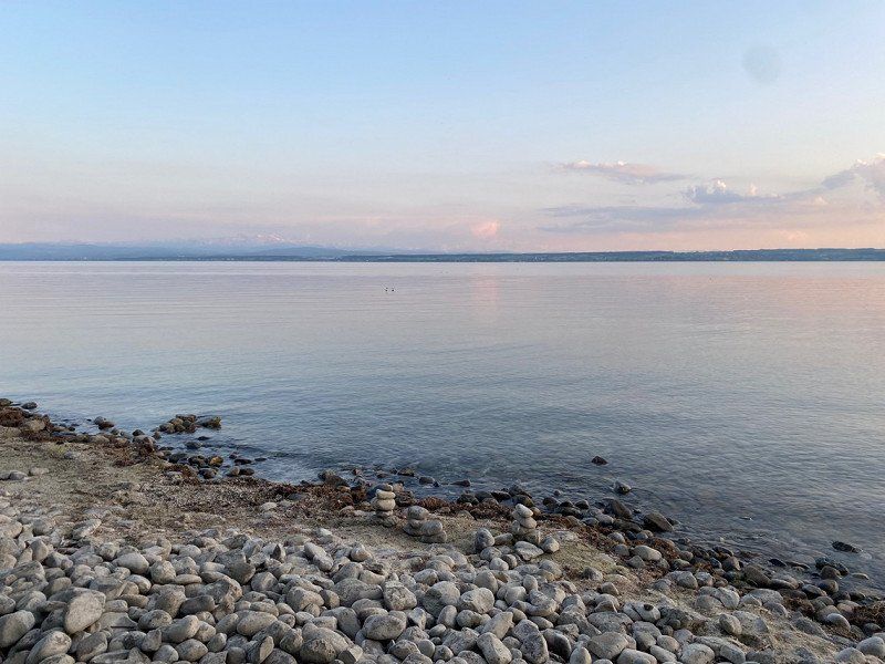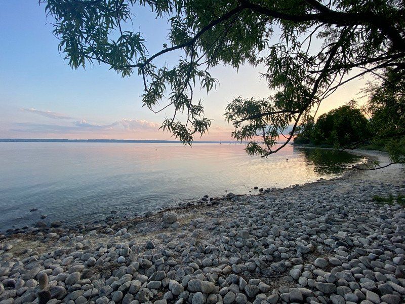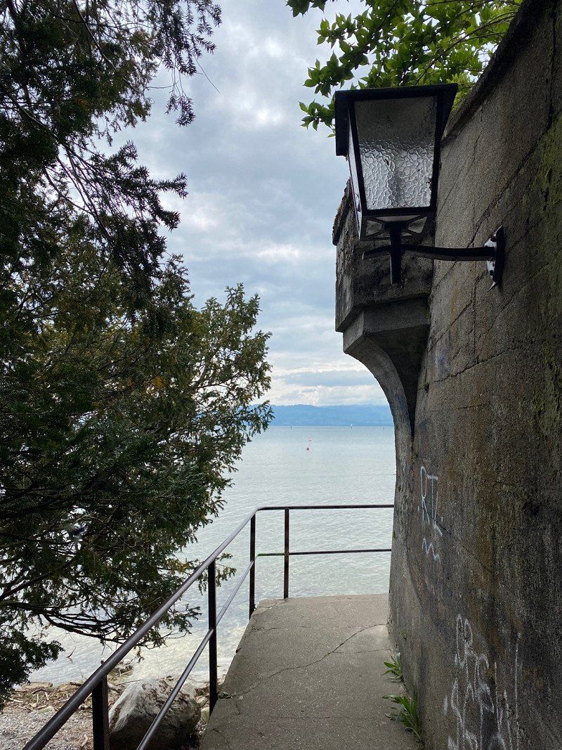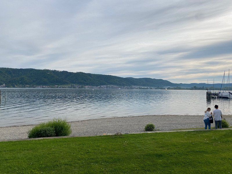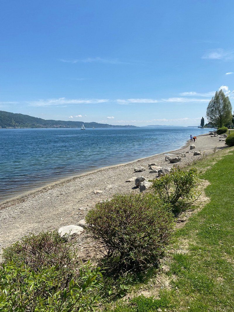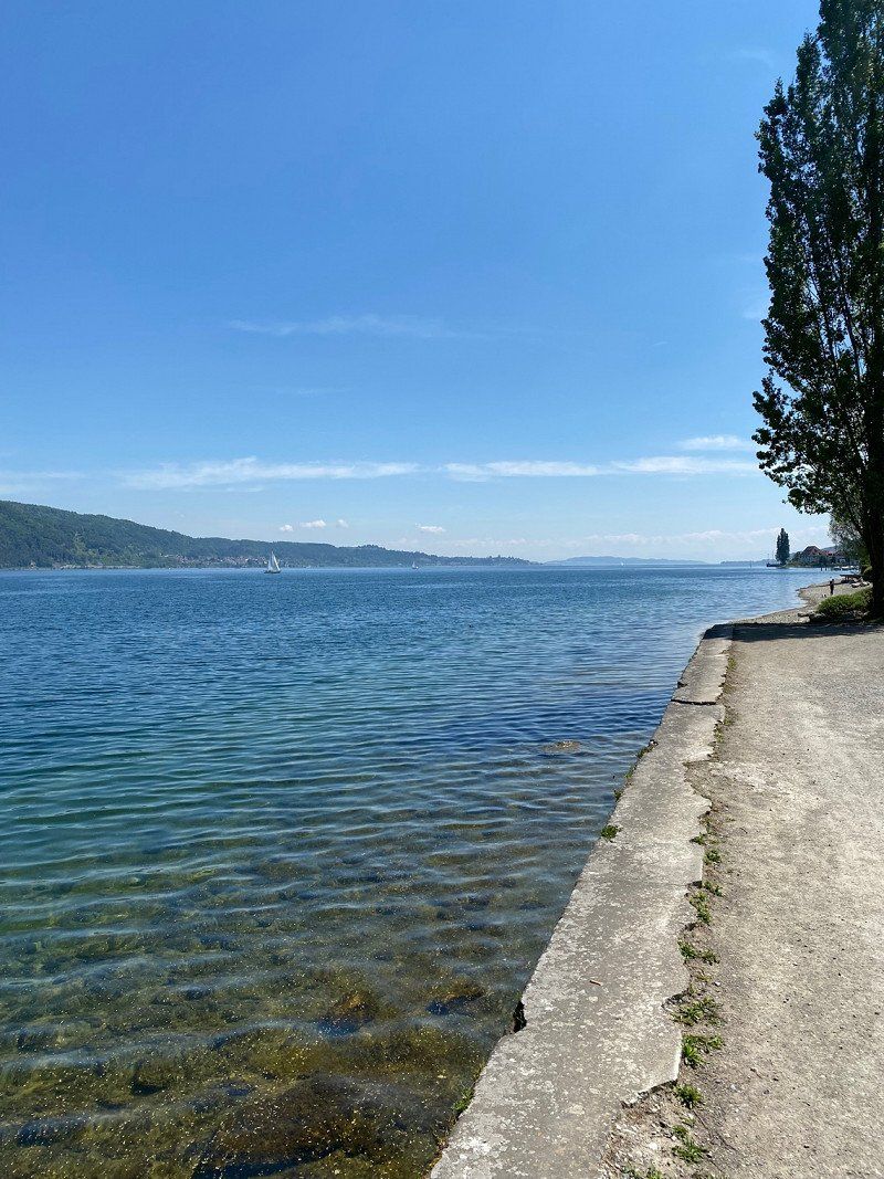 Hagnau ist ein süßes Städtchen und vor allem auf der Mauer im Park ist die Aussicht gigantisch. Wir haben uns eine Pizza geholt und den Sonnenuntergang genossen.