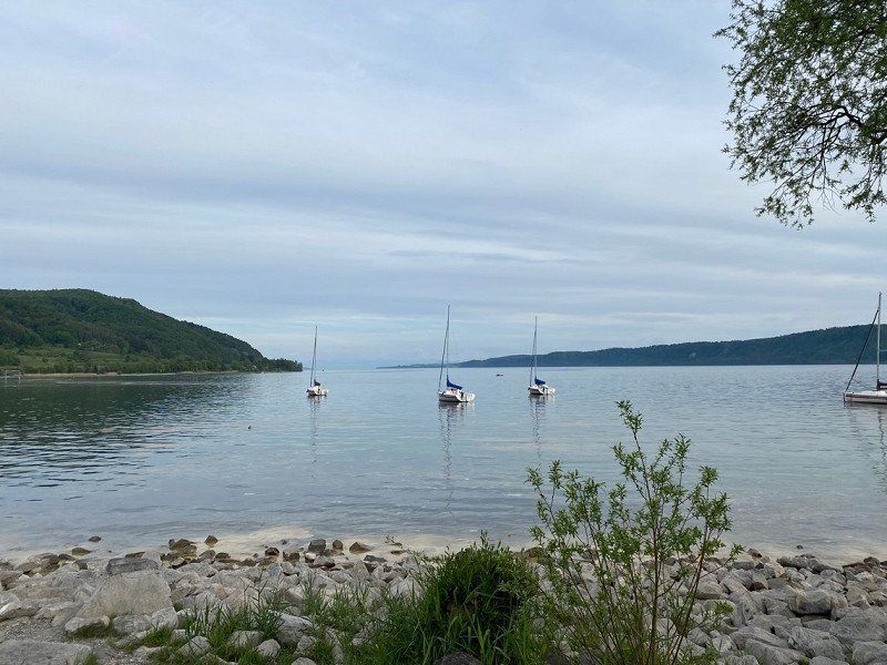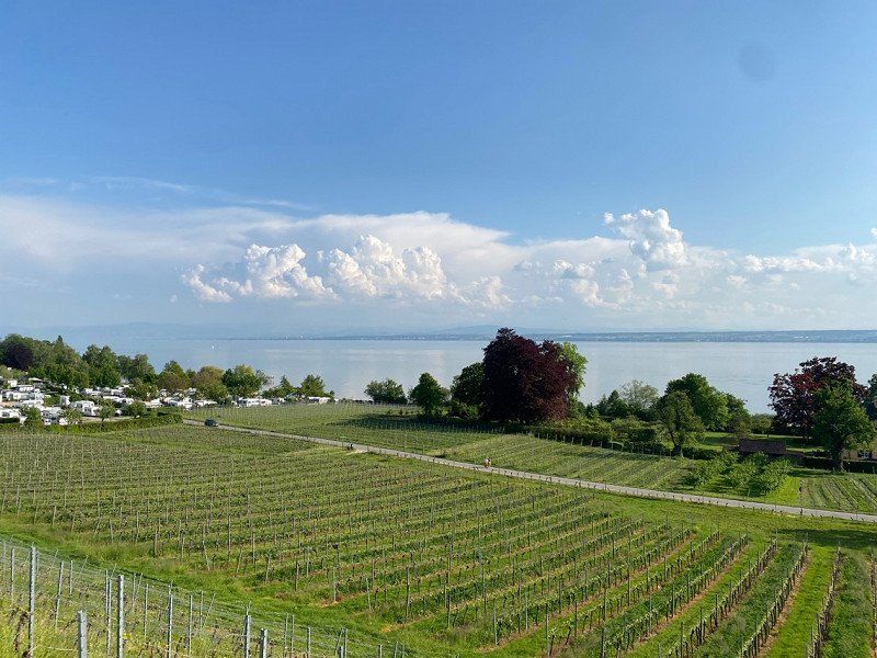 Abends wollten wir noch nach Hagnau. Es gibt einen Parkplatz „Aussichtspunkt Wilhelmshöhe“ auf dem wir ursprünglich schlafen wollten (Aussicht mega!!!!) aber der liegt direkt an einer Durchfahrtsstraße und wir hätten nicht mal ein Stück Wiese gehabt für unseren Hund, also doch wieder auf einen Campingplatz!