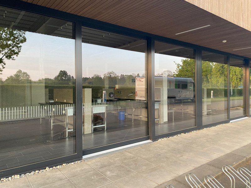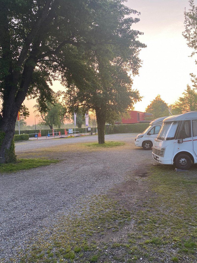 Die Übernachtungs-Stellplätze sind direkt vor dem Eingang und für 20€ die Nacht bekommt man zusätzlich Strom, man darf reinfahren zwecks Frischwassertank, WC und Grauwasser und die Sanitäranlagen sind auch mit dabei!