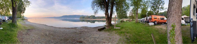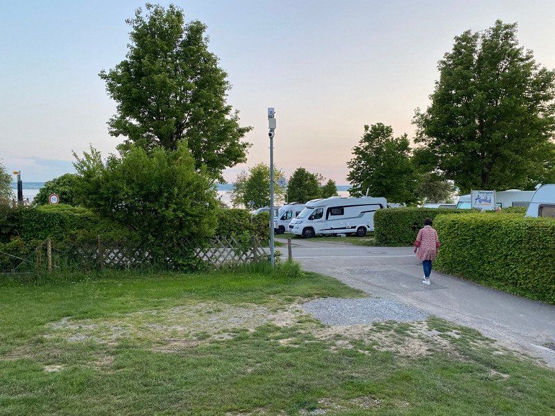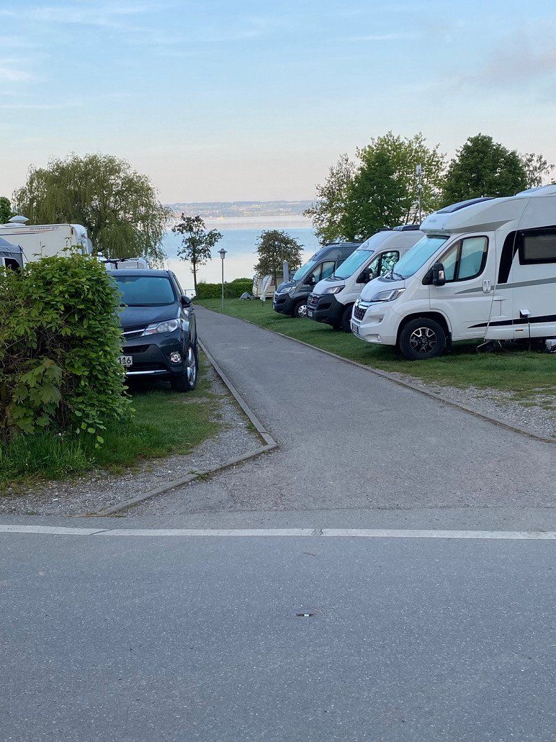 Direkt unterhalb liegt der Campingplatz Alpenblick. Auf den ersten Blick total schlicht und einfach aber Praktischerweise liegt dieser nur einen schönen Spaziergang entfernt von der Promenade in Hagnau und dann waren es uns die 35€ wert um nicht wieder nach einem passenden Parkplatz suchen zu müssen.