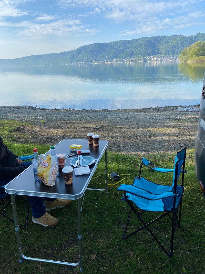 Nach dem schönsten Aufwachen das man sich vorstellen kann haben wir dann leider zusammenpacken müssen, noch gemütlich an unserem Seeplatz gefrühstückt und ab in die Heimat.