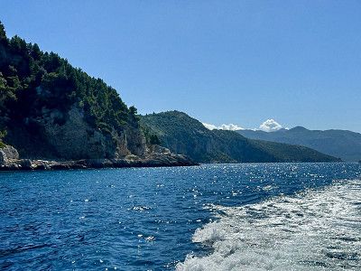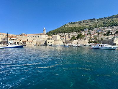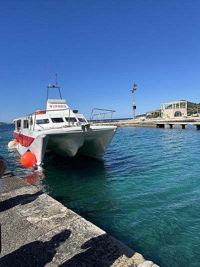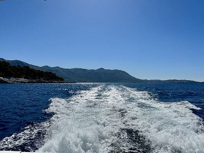 Morgens ging es wie geplant wieder bergabwärts zum Hafen von Mlini. Die Tickets für die Taxi-Bootsfahrt von der Gesellschaft Vivado hatten wir bereits auf dem Campingplatz erworben für 15€ pro Nase hin und zurück und unser Chico durfte gratis mit. Es hat alles bestens geklappt und die Besatzung hin wie zurück war super!
