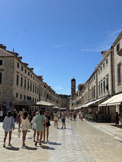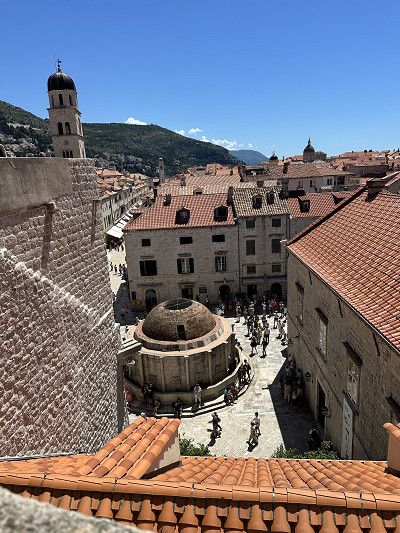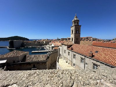 Wir sind nach der Ankunft zuerst auf die legendäre Stadtmauer hoch. Tickets hierfür hatten wir vorab online gebucht aber man kann sowohl den normalen Eintritt als auch den Dubrovnik Pass (der auch 35€ kostet und einiges an Eintritten und Ermäßigungen inkludiert hat) auch Vorort kaufen.