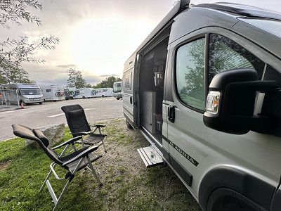 Diesmal haben wir noch den letzten Platz auf dem Wohnmobilhafen ergattert: zwar am vordersten Eck aber war uns trotzdem lieber als auf dem Parkplatz von letztem Mal da wir hier noch ein bisschen raussitzen konnten und auch am nächsten Morgen draußen noch frühstücken, sollte das Wetter mitmachen.
