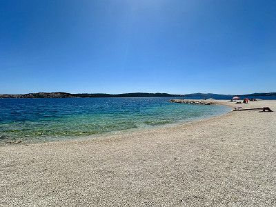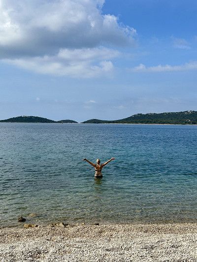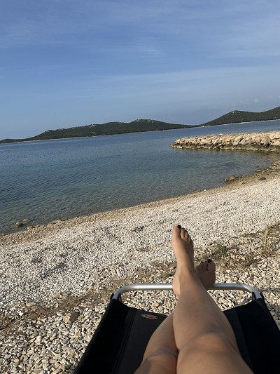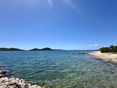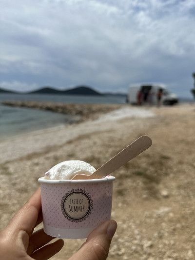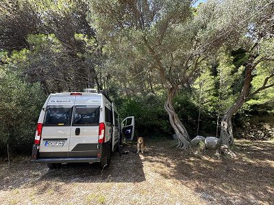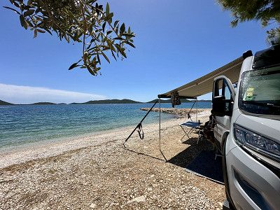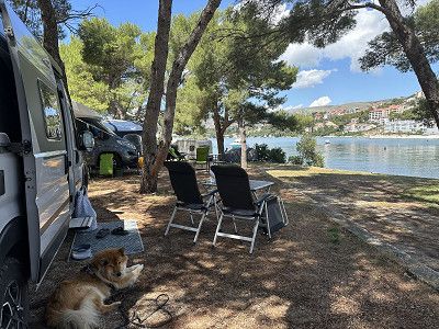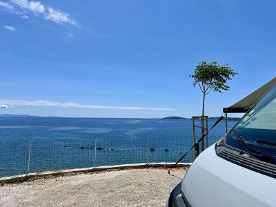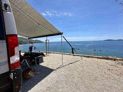 Das Camp Roko liegt gigantisch schön und wir haben es wahnsinnig genossen so nah am Wasser zu sein. Es hat ein Sanitärgebäude, Ver-und Entsorgung, WLAN in bestimmten Bereichen und sogar ein Eiswagen der einmal täglich kommt, sehr nette Betreiber (sprechen sogar deutsch) und (ich muss es nochmal erwähnen) 1a Strandlage mit Blick auf die Kornaten für 30€ die Nacht zu zweit mit Hund.