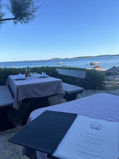 Wirklich sehr zu empfehlen! Die Lage ist herrlich und der ganze Platz ist sehr gepflegt ebenso wie der Strand. Das Restaurant ist wirklich gut, die Kellner wahnsinnig nett und preislich auch ok für die Lage!