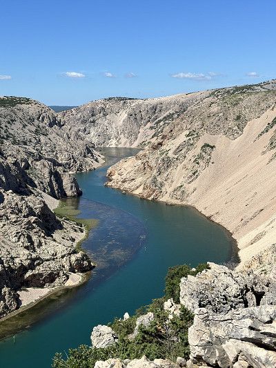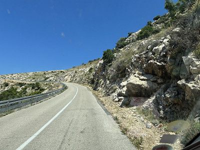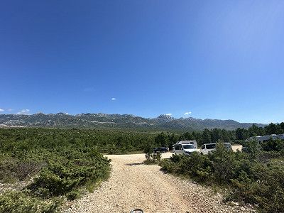Wir sind bis 12 Uhr noch auf dem Skrila Sunny Camping geblieben und wollten dann eigentlich ein Stück Richtung Baska bzw Baska Stara fahren um diese Felslandschaft noch etwas mehr zu erkunden und die Drohne noch hochzuschicken aber nach ein paar Metern weg vom Camping kam schon ein „Durchfahrt verboten“ Schild für Wohnmobile und da zu der Seite hin irgendwann Sackgasse gewesen wäre haben wir uns nicht getraut. Zur anderen Seite Richtung Baska wäre es ein riesen Umweg gewesen und keine möglichen Parkplätze in Sicht die erlaubt oder passend für unser Vorhaben gewesen wären also haben wir den Plan verworfen und sind direkt Richtung Krk auf unseren nächsten und letzten Platz in Kroatien