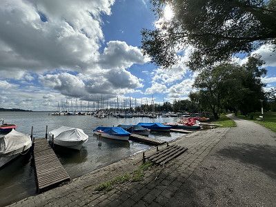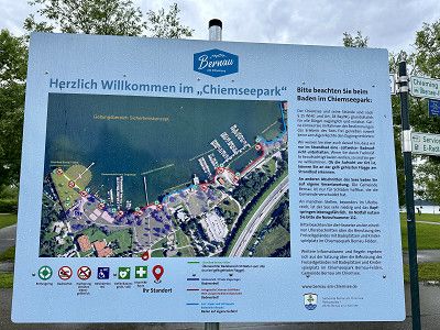 Wir sind den Wohnmobilhafen am Chiemseepark Felden angefahren, zwischen Autobahn und See gelegen aber leider war dieser voll.